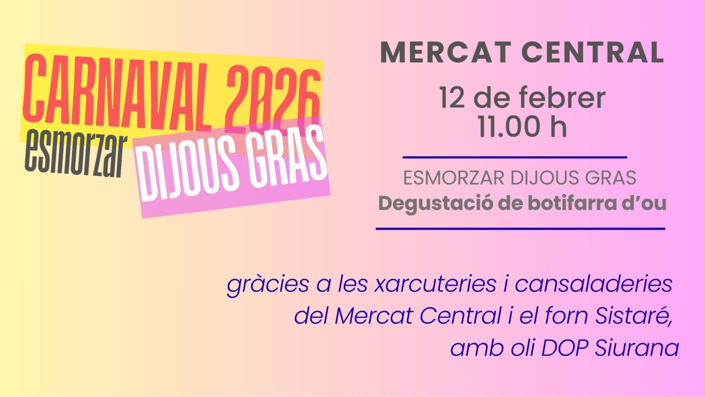 5 de febrer de 2026 Torna l’esmorzar de Dijous Gras al Mercat Central, amb botifarra d’ou de les paradesS'acosta Carnaval i el Mercat Central es prepara per donar-li la benvinguda com toca: el dijous 12 de...